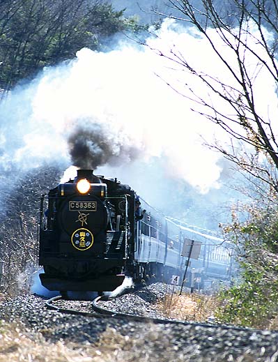 画面右の木のあるあたりがお立ち台です。良いポジションが残っていなかったので、先の踏切付近から撮りました。奥久慈号のマークはなかなか渋くて決まっていると思いませんか?