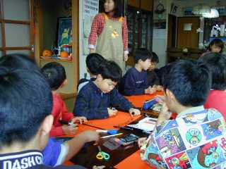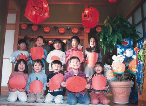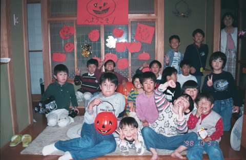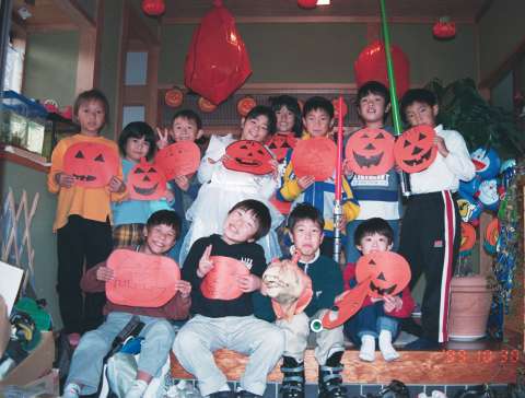 幼稚園組みの記念写真。紙のJack-O-Lantern