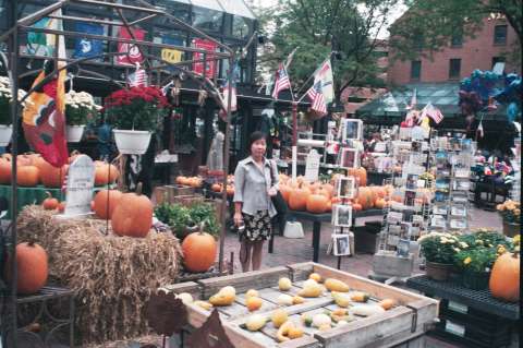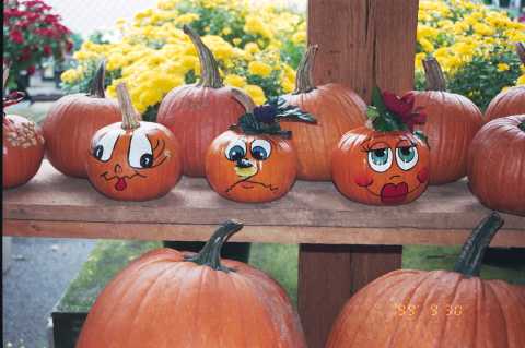 なるほど、小さなカボチャは、ペイントする手もあったのか。(マサチューセッツ州ボストン郊外の八百屋さんで)