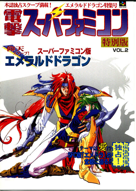 エメラルドドラゴンのストーリー(世界情勢みないなもの)とキャラクターの紹介がされています。このときのキャラ紹介は主要メンバーの4人でまだ他のキャラについては触れられていません。プロモーションスケジュールというのは、各メディアなどでのキャンペーンを表にまとめたものです。それとスーパーファミコン版ということで、他の機種で作られたエメドラとの違いを書いた文もあります。
