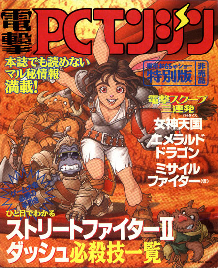 PCエンジンのエメドラが制作開始のことが大きく掲載されていて、たぶん当時、初公開であろう画面写真を載せています。それもさることながら、キャラクター設定資料は木村氏の直筆で描かれているものを載せていて、史料価値としても十分の一冊です。