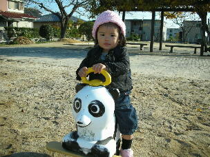 パンダ の乗り物に直行。慣れてきたのか、自ら前後に動かして楽しんでました。