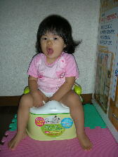 今日は一日おうちでまったり ポカポカ陽気で気持ちいい日でした。昨日に続きみーちゃんをオマル に座らせてみました。今日も座るだけかなと思っていたところ、なんと立派なうんにょしてました。みーちゃんはオマル の中を見て不思議そうな顔。ほめてあげるとニコニコしてました