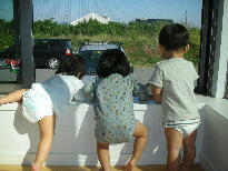 スタジオに戻ってからは、4歳のお兄ちゃんのまねっこで、窓から脱走しようとしている3人組が。みーちゃん・ま○ちゃん・はる○君、逃げようったってそうはいきませんよ。