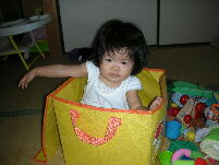 おもちゃ箱 中身はすべて出し 自分が入ります。 |