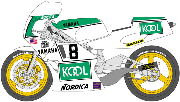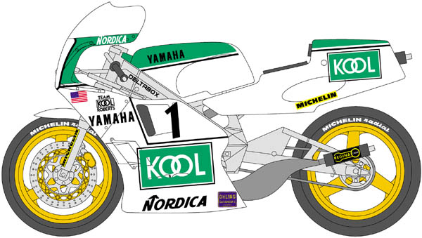 YAMAHA YZR500 (OW81B) 1986 Team Kool Roberts AMA#1 Mike Baldwin AMA#8 Randy Mamola |