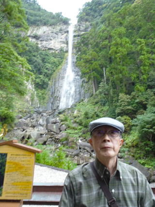 2025/10/19 洋一は飛鳥Ⅱのクルーズで熊野古道を歩き、那智の滝を観光しました。希代子の写真を携えて。