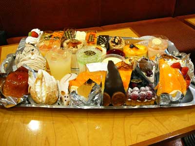 | かつて、六本木のお店にはルコントさん本人がいて、「おいしいよ〜(^O^)o―」などとおどけながら満面の笑みを浮かべて、自らケーキのサンプルを乗せたトレーを持って来てくれたものです。 | それでは、店員さんにケーキのサンプルを持って来てもらいましょう。 |