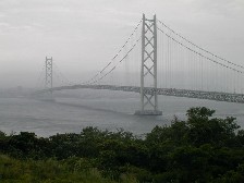 淡路島の岩屋港までは約20分。明石海峡大橋を眺めながらの短い船旅である。時おり雨が降り、海面には白波が立っていたが、それほどの揺れもなく、無事岩屋港へ到着した。