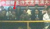 | 「キング・オブ・ギャンブラー」見ました。 谷垣さんは梁家輝扮する中国の賭博王がカードの妙技を披露する会場の客席にいました。 主催者(?)の台詞で客が「日本のヤクザさんご一行」であったことが判明。 ってことで、ガイド役でもなく台詞もありませんでした。 でも写真を撮ったりしているのでけっこう目立ちますよ。 情報提供: kalraさん(2001/5/1) |