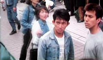 | 1994年製作。 本編開始 17分あたりに登場。 虹口道場に突然訪れた李連杰(リー・リンチェイ)に、「オイ!待て! 外に靴脱いで、出直して来い!」 と怒鳴りつける。(左) 師範の忠告に従わないリンチェイを、「貴様ァ〜」と睨みつける。(中央) 怒ったリンチェイに突きを入れられ、ナイスな演技でリアクション!(右) 補足: 道場生の役で「角刈り」にされる。李連杰(リー・リンチェイ)は寸止め無しなので、演技の必要はなかった。 |