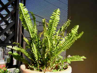 シノブ 新潟県越路町の実家にあったものを、鉢 ごと持ってきた。 (2005年5月7日撮影) |
