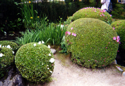 丸くカットされたツツジから、花だけが飛び出してピョコピョコと咲いてるのが面白いです。