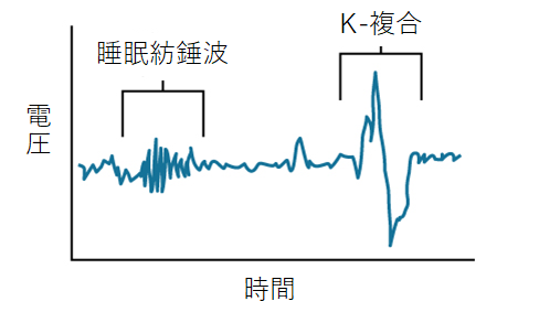 特にノンレム睡眠において観察される「紡錘波=スピンドル波」と「K複合体」は注目すべきです。