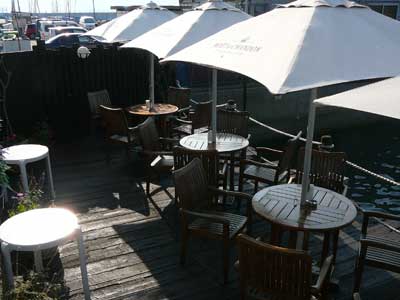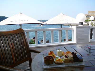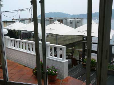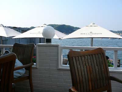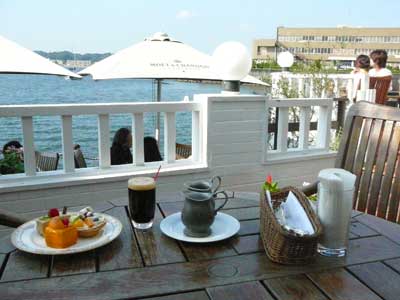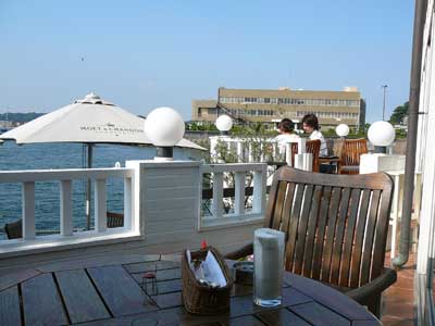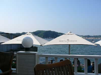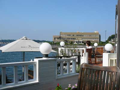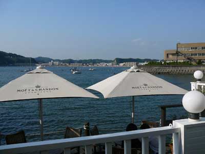 | 葉山港と鐙摺海岸に面した白い洋館は、南仏かニューポートビーチにあるレストランを連想させます。 | |