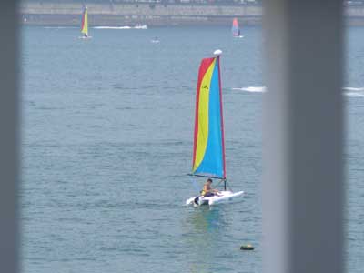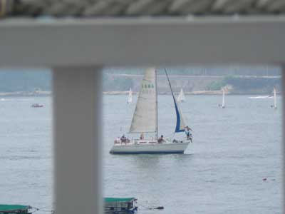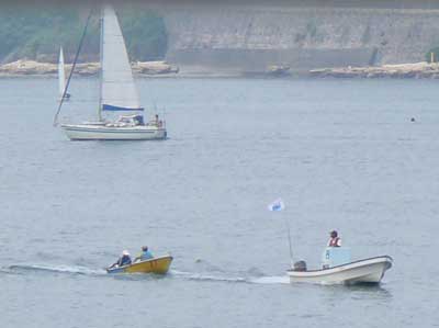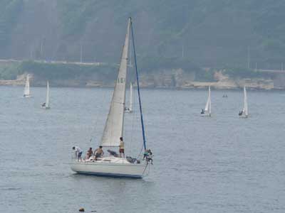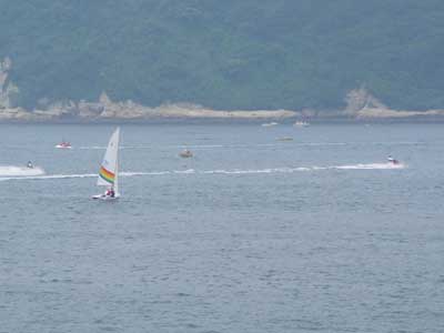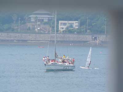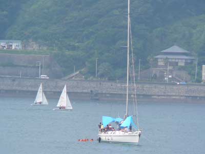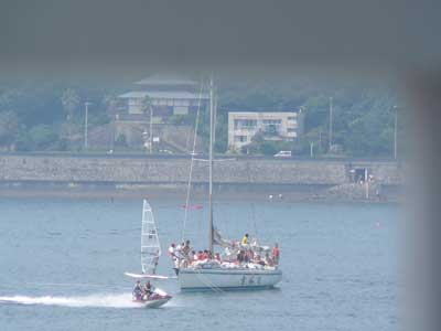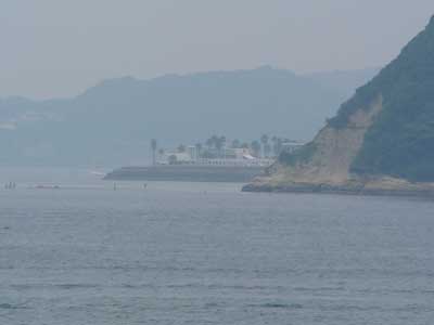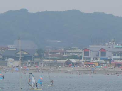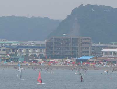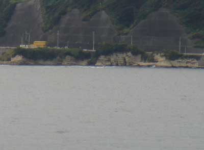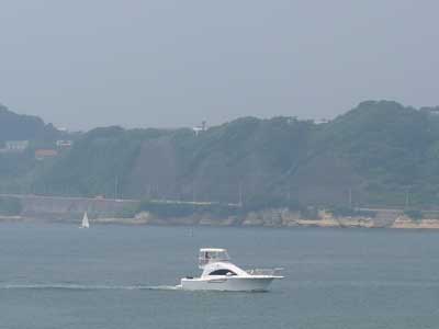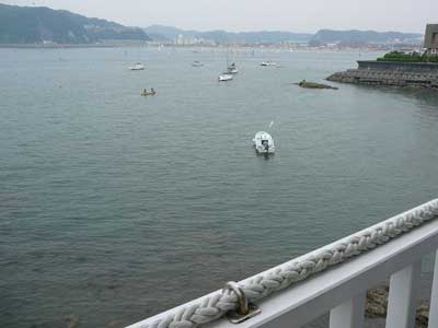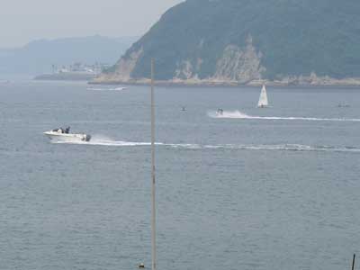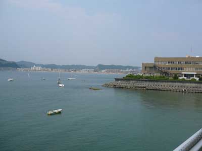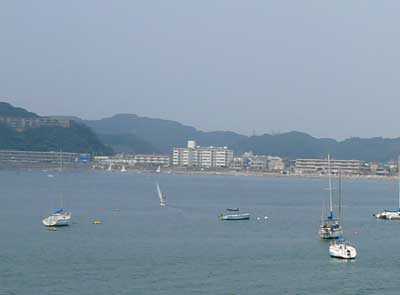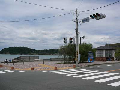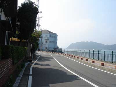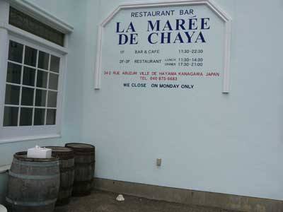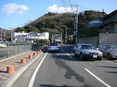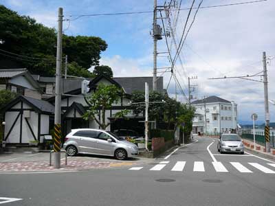 | 鐙摺葉山港入口交差点。左がフランス菓子店「パティスリー・ラ・マーレ・ド・チャヤ」。奥の白い建物がフレンチレストラン「ラ・マーレ・ド・チャヤ」。右側は逗子湾。目の前の小さい海岸が鐙摺海岸(あぶずりかいがん)です。 | |