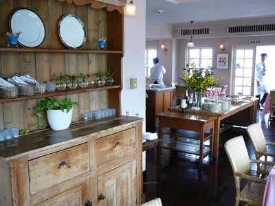 | 1977年、総料理長に熊谷喜八シェフを迎えてオープンした海辺風創作料理店「ラ・マーレ・ド・チャヤ」。南仏のレストランを想わせる白い建物は、自然が織り成す最高の背景と三崎の新鮮な魚介類を活かした料理、そして行き届いたサービスでくつろぎを与えてくれます。オープン以来33年間、湘南界隈で人気随一を誇るレストランです。オープン当時は、エントランスと2F踊り場の突き出した部分は存在せず、正方形の建物でした。 | |
