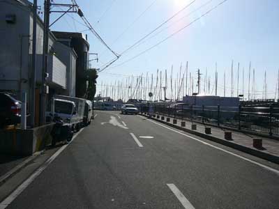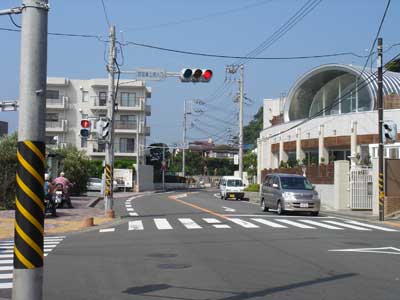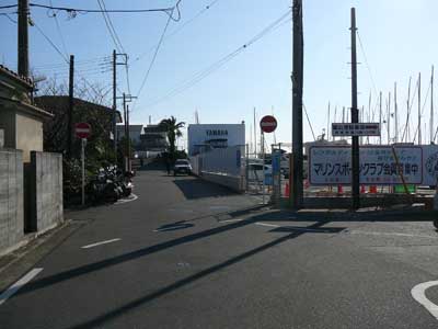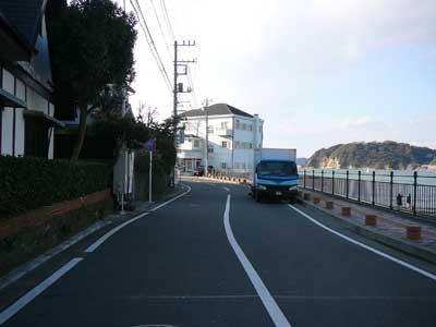| 森戸海岸線 鐙摺葉山港入口交差点を左に曲がって… |