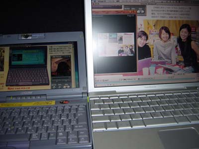 | ノンノ1994年1月5日号。大学1年の時に、ノンノ専属モデルオーディションに応募。グランプリに選ばれた瞬間。 | メンズノンノ1999年7月号「拝見!あの人のデジタル・ライフ」を見ると、当時の甘糟さんはVAIO C1R使いのモバイラーであったことが判明。ポストペットや内蔵カメラで撮影した写真付きEメールにハマってたようです。ワンダフルハウスもこの時期、C1Rを使っていて、世界初の電子図書館を完成させました。 |