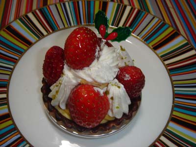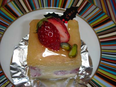 | ワンダフルハウスが買ったキャンティのクリスマスケーキを紹介いたします。おっと、苺のタルトのてっぺんのいちごが転がり落ちてしまいました(^‐^;) | 「苺のタルト」(630円)。この値段はクリスマス価格で、普段は525円。調理師専門学校を卒業後、フードコーディネートの学校に通う、ゆーこさんのブログをご覧ください。キャンティの製菓部で12月23日から40時間寝ないでクリスマスケーキ作りのバイトをしたそうです。ホールケーキの写真や「苺のタルト」の製造途中の写真を見ることができます。なるほど、キャンティの「苺のタルト」はこうして作られていたのですね(^‐^) | |