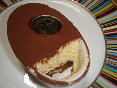 | 「ティラミス」(630円)。左がツリーと白い粉砂糖が乗ってるクリスマスバージョン。右が普段のバージョン。トップのフランス産のココアパウダーの甘さと苦さのバランスが絶妙(^Q^) 中のイタリア産のマスカルポーネ&卵黄&生クリーム&ゼラチン&キルシュを合わせたクリームが、程好いクリーミーさで、品の良い落ち着いた味わい。底のエスプレッソシロップをアンビベしたスポンジも最高に美味です。 ティラミスは1960年代、イタリア・ヴェネト州トレヴィーゾにある「El Toula'」というレストランが初めて作ったといわれています。また別の説では、17世紀末、トスカーナ大公がトスカーナ州シエナの町を訪れた頃に生まれたともいわれています。シエナの菓子職人達は大公を心から歓迎し、気品溢れるデザートを創り上げることにしました。それはシンプルでありながら風味豊かな材料が入った重要なデザートでなければなりません。当時の貴族は非常に甘いもの好きで、豪華さと贅沢さを求めていたのです。この中で実現したものが現在のティラミスとなり、大公に敬意を表して「侯爵のケーキ」と呼ばれるようになりました。その後、刺激的で催淫的な甘い特質が含まれると考えた宮廷人のお気に入りのデザートとなり、恋の出会いの前に何皿も食べる習慣が流行りました。そういうわけで「侯爵のケーキ」は、「ティラミス tiramisu'」(tira=引っ張って、mi=私を、su=上に→私を持ち上げて→私を勇気付けて)という隠喩そのものの名前に変わったそうです。 |