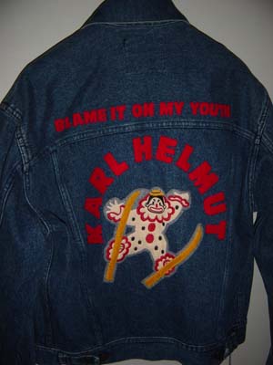 | ピエロのアップリケが背中に付いてるGジャン。当時、丸井横浜関内店馬車道館にあったカールヘルムの店員さんから聞いた話では、丸井の社員さんが「これ、いいね〜」と言いつつ、買っていったそうです。確かにピエロのポーズとロゴの配置が絶妙で、いいGジャンですね。1987年当時、スキーのV字ジャンプは、飛型点で大きく減点される失敗ジャンプでした。しかし、1991年から減点対象から外されて、1992年のアルベールビル五輪から主流になりました。丸井横浜関内店は2000年に閉店されて更地になった後、2003年、超高層マンション「横浜シティタワー馬車道」に生まれ変わりました。時の流れを感じさせるGジャンです。 | |