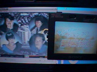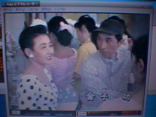 | 劇中のパーティーでは、段田さんはキャメル色の雛菊刺繍アルパカジャケット(カールヘルム’93年秋冬物 ¥58,000)を着ているが、実際のパーティーでは、金子さんはカタログと同じ紺を着用していた。 | 学生時代の金子さんが着ているチェックのシャツは、どう見てもカールヘルムである(^_^;)。しかし、これはご愛嬌で、スタイリストが当時の金子さん達を知っている堀切ミロさんなので、昭和30年代の衣裳が素晴らしい。 |