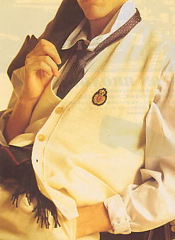 | Vネックセーター¥34,000、シャツ¥14,000、ネクタイ¥7,400、パンツ¥24,000(カールヘルム) | セーター¥23,000、ジャケット(スーツで)¥73,000、シャツ¥24,000、パンツ¥16,000(カールヘルム) | スポルディングの眼鏡の広告にカールヘルムの商品が使われた。ベスト¥19,500、ネクタイ¥6,300(カールヘルム) |
