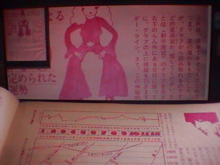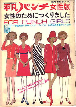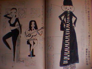 後にアンアン調と呼ばれることになる三宅菊子さんの文体もこの号から確立されている。「ファッション雑誌に書いてあるパンタロンの着こなし、なんてルールは、全部ポイ!しましヨ。太いは太い、細いは細い、オシリペチャンコ、オッパイプリプリ、全部ゴキゲン、ゼーンブあなたのミリョクチャン、です」 |