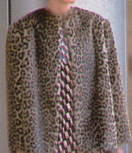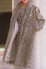 | ピンクハウスの豹柄で最も初期の商品。右のロングコートはショーで使用しただけで、商品化されなかった。それを商品化したのが左のコートでハーフ丈になっている。残念ながらロングコートは商品化されたとしてもかなり価格が高くなってしまって普通の女の子にはなかなか手が出せないものになってしまうそうだ。左のカラーレスのハーフコートは、大橋歩さんのイラストで、’81年秋冬コレクションのポスターになった。 | |