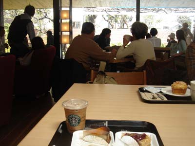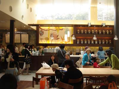 | ワンダフルハウスは、午前中に鎌倉入り。小町通りにある鎌倉五郎本店で季節限定品「桜しぐれ」を購入。その後、鎌倉市役所向かいにある「チャヤマクロビ鎌倉店」に行きました。 | ここは、「スターバックスコーヒー鎌倉御成町店」でもあります。スタバ(店内右側)と、日影茶屋系列で葉山に本店のあるチャヤマクロビオティック(店内左側)のコラボショップなのです。ワンダフルハウスは、席をキープしてから、チャヤマクロビのコーナーに行ってみました。 |
