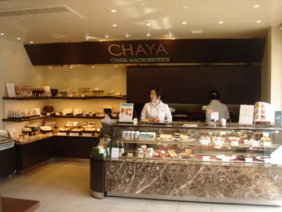 | 店の片方がチャヤマクロビオティックのショップで、もう片方がスタバ。チャヤマクロビのケーキとスタバのドリンクを組合せていただくことができます。ワンダフルハウスは、安井かずみさんが生きていたら、チャヤマクロビは好きだったろうと思いました。美容も食事も、ライフスタイル全体が健康志向だった安井さん。30歳代(1970年代)から味噌・醤油などの調味料を自然食品に切り替え、圧力鍋で玄米を炊き、パンやパスタも全粒粉のものを好み、1日に1.5リットルのミネラルウォーターを飲むことを心がけていました。現在では珍しくありませんが、当時は、あまりにも先端的なライフスタイルでした。 | |