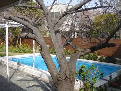 | ここは以前は、「フクちゃん」で有名な漫画家・横山隆一邸でした。庭のプールと桜の木は、その名残です。この日、なぜか桜は咲いていませんでした。 | |