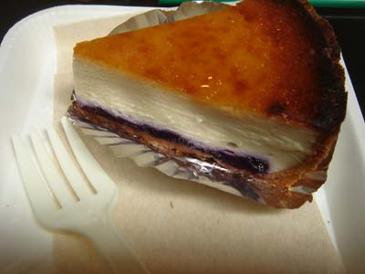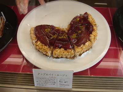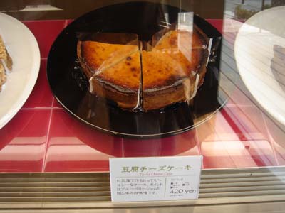 | 「豆腐チーズケーキ」(420円)。豆腐で作られたヘルシーなケーキ。ポイントはブルーベリージャムと隠し味の白味噌です。 | 「アップルパイ・ルージュ」(546円)。 サクサクとした食感のパイ 生地にアールグレーのスポ ンジと、赤ワインで煮込ん だ甘酸っぱい紅玉をたっぷ りと敷き詰めた、 大人テイストのアップルパイ。 |