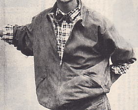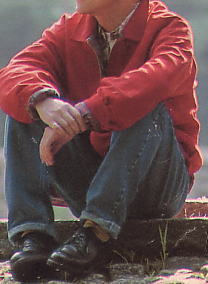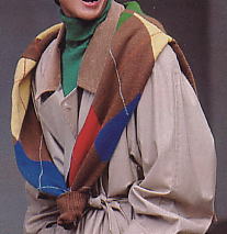 | 4これは珍しい!現カールヘルムデザイナーの増田宏則さん(当時はカールヘルム企画)が同じものを着ている。黒、ベージュ、こげ茶、赤、グリーンの5色展開だった。チェックのシャツ¥15,000、ペイズリ―の蝶ネクタイ¥5,800…ホットドッグ・プレス1987年9月10日号(No.175) | |