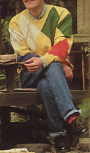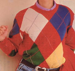 | 7身頃全体に入った大きなアーガイルが、カラフルで楽しい。思いきりハデだけど、ジーンズでラフに着れば決してイヤミにならない。モデルはマーク・パンサー…メンズノンノ1988年1月号(No.20) | |||
