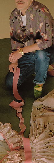 | 4プレスルームでの金子さん。写真3と色違いのジャンパーも買っていた。…Fashion Yearbook おしゃれ年鑑’88春夏編(写真5も) | |