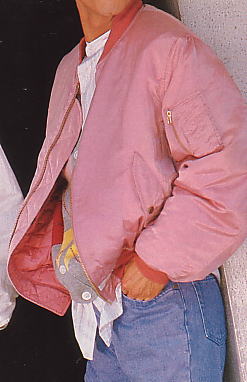 ツルツルで光沢のあるナイロンブルゾン¥34,000、スタンドカラーシャツ¥17,000、パンツ¥13,800 男なら誰でも出会う”ピンクの壁”。思い切って一度乗り越えれば、ピンクが大好きになる。 |