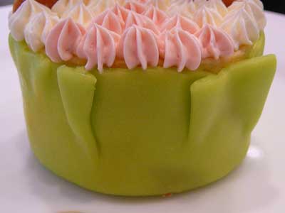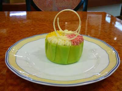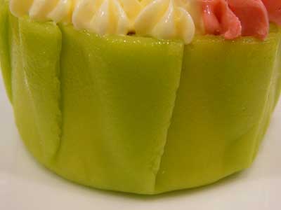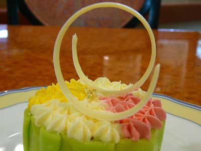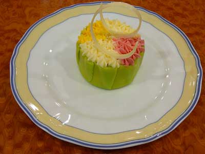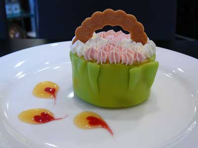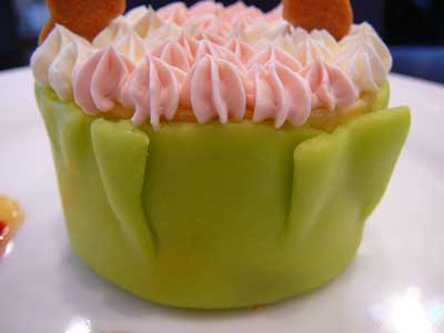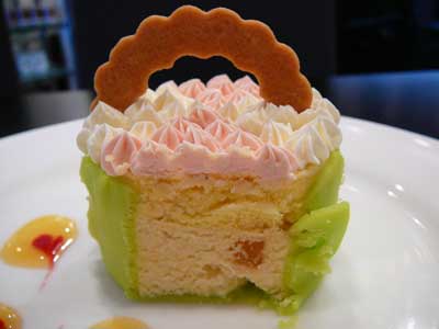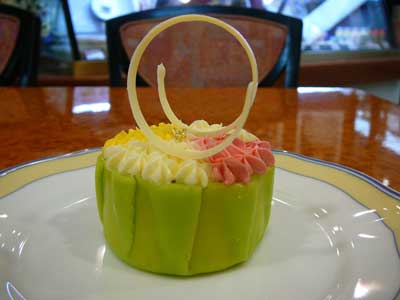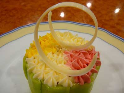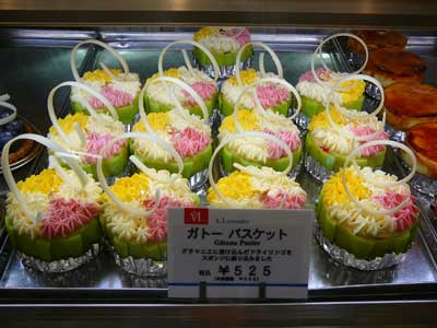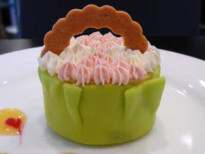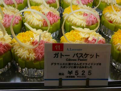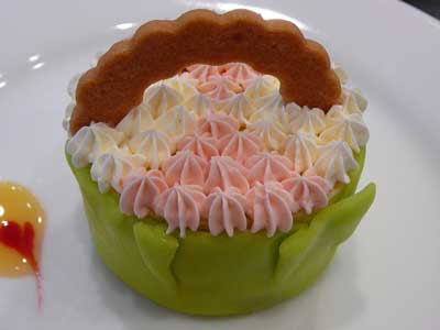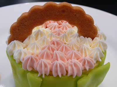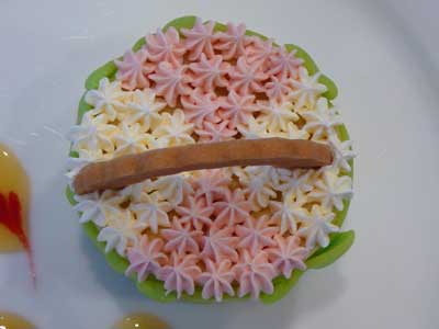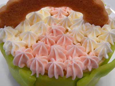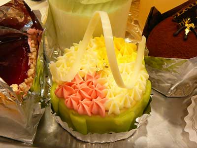 | 籠の部分はマジパンで出来てます。シュー生地のものもありますが、こちらの方が古典的であり、本格的といえます。 |
