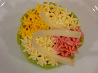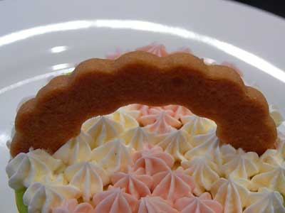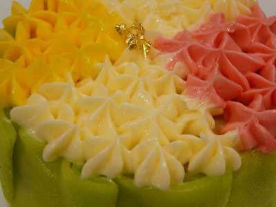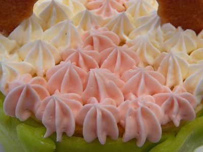 | 白とピンクのバタークリームを星形の口金で絞り出して飾ります。 |
