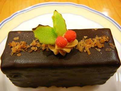 「ドンクです。本業はパン屋ですが、ケーキも本格的。ワンダフルハウスは当時のドンクのルセットを所有していますが、ケーキは限りなくルコントのレベルに近いです。現在シェ・リュイ社長の平井政次氏の作品です」 |