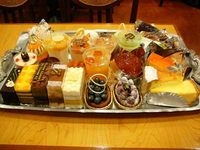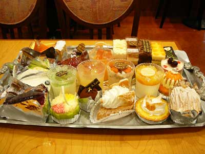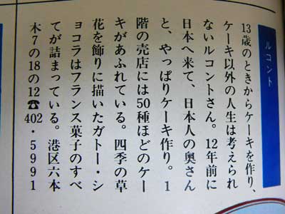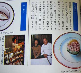 | そしてルコントのケーキの登場です。当時まだ修業中だった島田進氏が作ったものもあります。 |
