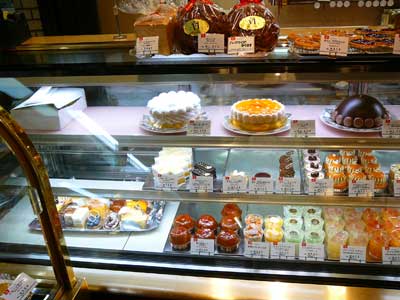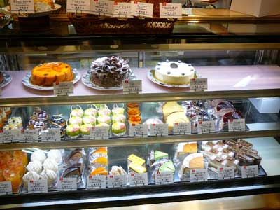 ローザー洋菓子店のショーケースを御覧ください。まだ冷蔵機能が付いていないタイプです。 |