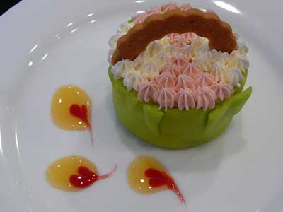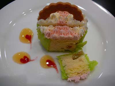 | これはプティガトー・サイズですが、大きいアントルメもあったそうです。アントルメはバレンタインが終わって閑になった時期に、若いパティシエを遊ばせないように作らせていたとか。 |