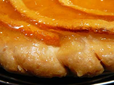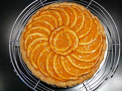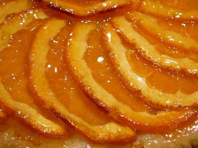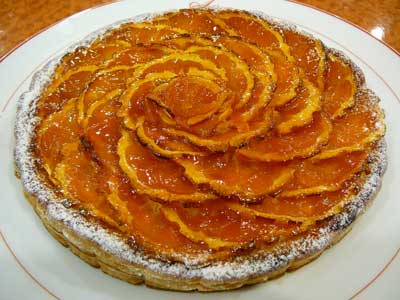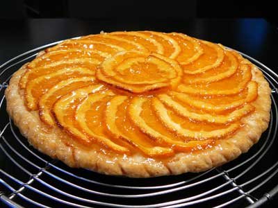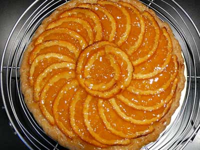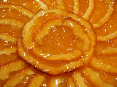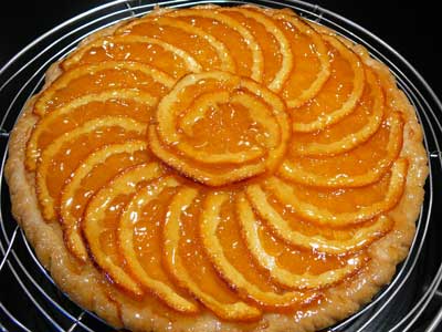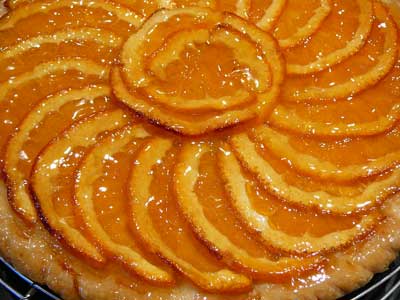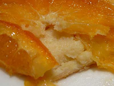 | ヴァレンシアオレンジのスライスを花形に並べて焼き上げたパイであることは確かです。 | |