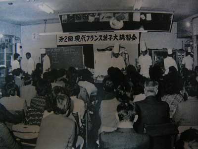 | ボンテ講師の素晴らしい技術と妥協を許さぬ厳しい製作態度、当時の最高の材料を使い、(写真では昭和の面影が色濃く漂っていますが)当時の業界ではこれ以上は望めないという最良の会場を準備しただけあって、大多数の受講生には満足のいく講習が実施できました。 | |