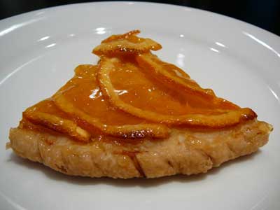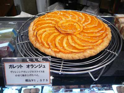| パティシエ・シマのガレット・オランジュは、極薄のパート・フィユテにクレーム・ダマンドを詰めて、ヴァレンシア・オレンジのスライスを載せ、マーマレードを塗ったお菓子でした。ガレット・デ・ロワではありません。 | |