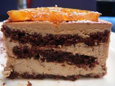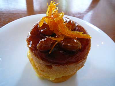 | 「クレーム・ノワゼット・カラメルの中にオレンジピール。その上にクレーム・ピスターシュの2層構造」 | |