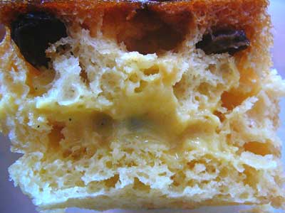 | パティシエ・シマの桜サントノーレのプティ・シューの中身も普通のクレーム・パティシエールですね。 | |