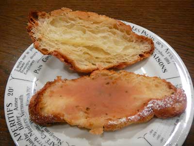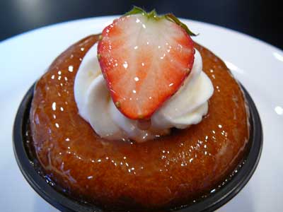 | 「これは凄い!(゚O゚)\ これは普通のブリオッシュ生地ではありません。細かい気泡にまでラム酒を染み込ませるパータ・ババというアミの目状の組織が特徴の特製生地なのです」 | |